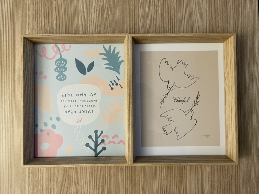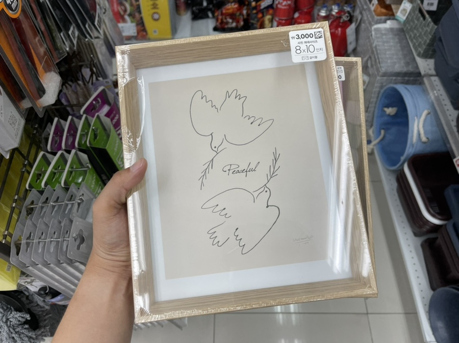 다이소로 달려가서 액자 두개를 사왔습니다.