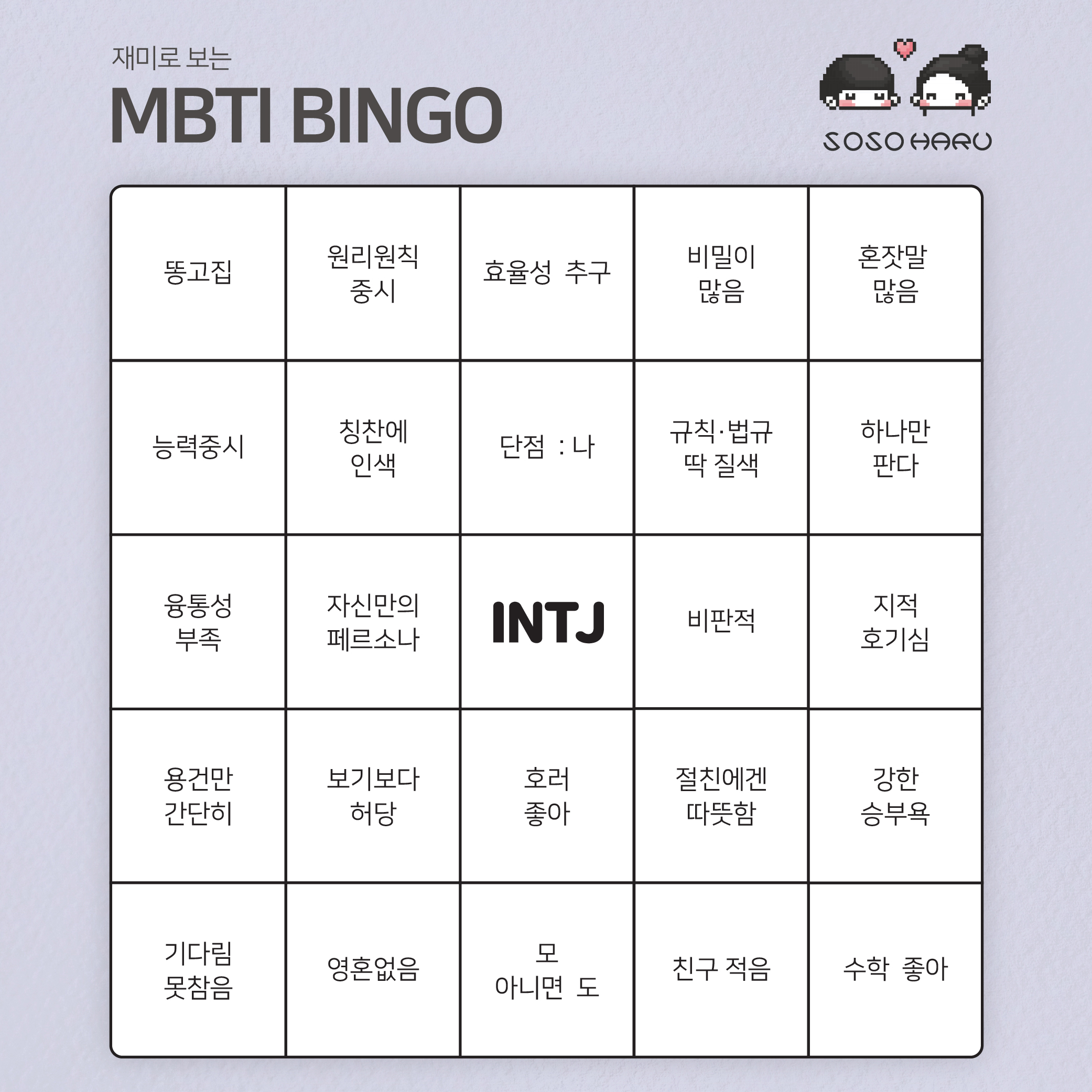 INTJ분들 몇개의 빙고를 만드셨나요?